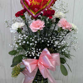 Price: $49.99 Love You Lots - 1 Dozen Mixed Carnations w/air-filled mylar Product Tags: Next-day Delivery